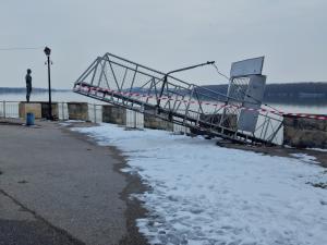 Румънски корабен конвой от шлепове и тласкач, който е бил на котва в района на видинското пристанище „Север“, е скъсал котвена верига и носейки се по течението на река Дунав е причинил значителни материални щети по инфраструктурата на пристанище Видин. Сред засегнатите от удар на конвоя са понтон, деформирани и наклонени са електрически стълбове, монтирани върху понтона, ударен е и кораб привързан към брега, разрушени са асфалтови и бетонни настилки в контактната зона между брега и понтона, видя репортер на Булфото.