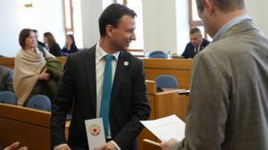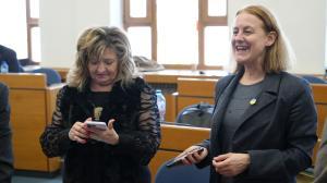 Деца от центъра за настаняване от семеен тип „Детелина" подаряват мартеници на столичните общински съветници и на кмета в началото на днешната сесия на Общинския съвет