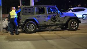 Катастрофа между лек автомобил и брониран джип на бул. „България“ и „Акад. Иван Гешов“, по чудо няма пострадали