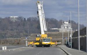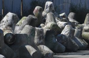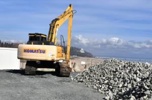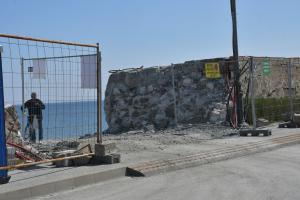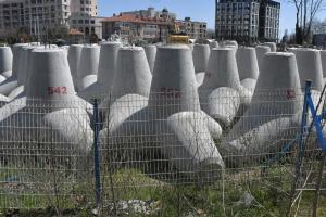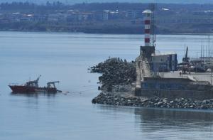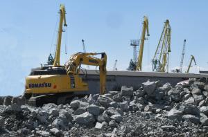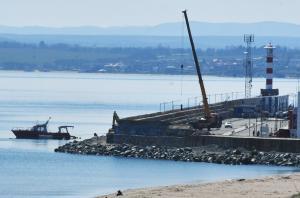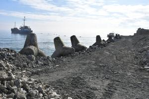 Продължава рехабилитацията на стария вълнолом на пристанището, като в момента се насипват скални блокове и се преместват тетраподи.