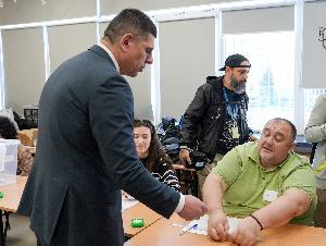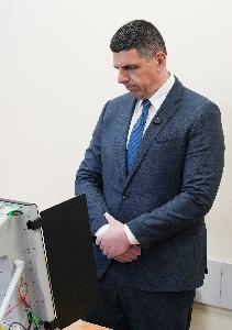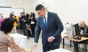 Лидерът на „Да! България Ивайло Мирчев гласува в Национална природо-математическа гимназия "Академик Любомир Чакалов".