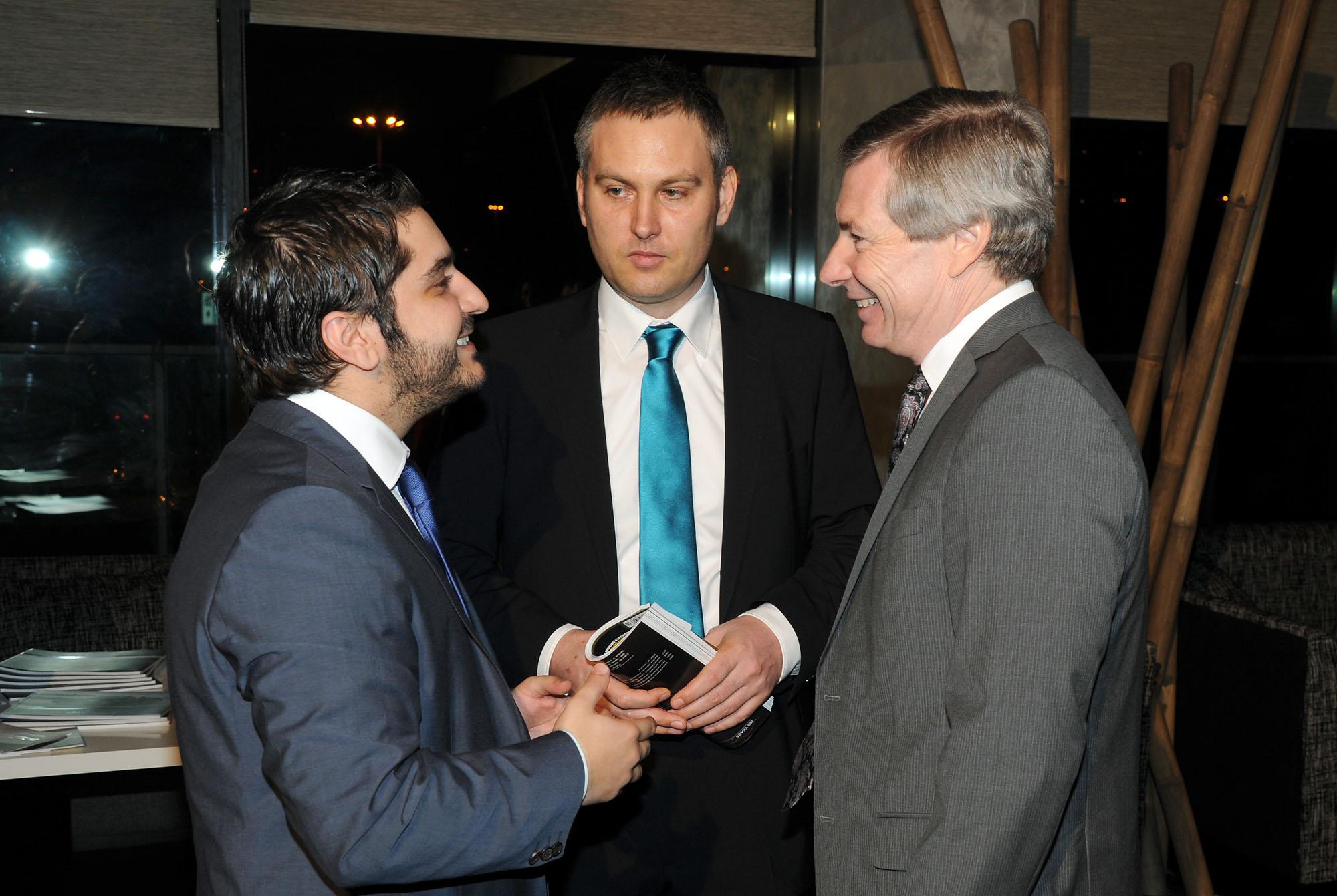 размер: 1341X2000 Автор: Евгени Димитров Издателят Христос Христу и главният редактор на списанието Йордан Матеев разговарят с посланик Джеймс Уорлик |