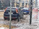 Екипи на аварийната служба отводняват участъка, а призивът е шофьорите да се движат с повишено внимание заради мократа настилка и намалената видимост.