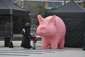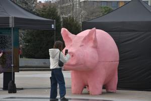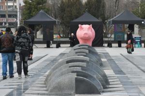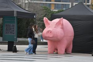 Розовото прасе вече е в Бургас. Предизборната арт инсталацията е дело на активисти от ПП-ДБ, които с нея зоват „Не на свинщината в българската политика“. Прасето е същото или подобно на онова, което бе поставено преди няколко месеца на пл. „Независимост“ в столицата със същия призив. На място се раздават и флаери на инициативата „Ти броиш“, която бе основана от „Да, България“