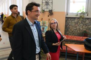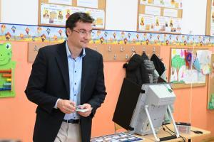 Лидерът на "БСП-Обединена левица" гласува с машина в столичното Първо СУ „Пенчо П. Славейков“.