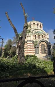 Старо изсъхнало дърво в двора на Параклис-мавзолея „Св. Георги Победоносец“ в центъра на Плевен беше отрязано, защото големият стар ствол заплашваше да се стовари върху паметника, символ на Плевен, а и представляваше опасност за хората. Дърветата в двора на Мавзолея са много стари още от времето на строежа му през 1907г.