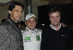 Футболистът Даниел Боримиров, позира за снимка с пилотът Боби Борисов и световният шампион Томи Макинен